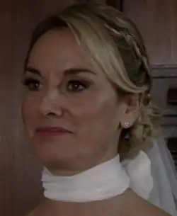 A more long-running pairing was featured between Mel and the character Steve Owen (Martin Kemp), who was portrayed as a villain. It was an on/off romance beginning shortly after both characters' introduction in 1998. In an interview in June 2000, Kemp discussed the relationship between Steve and Mel: "Steve's convinced Mel will make his life complete. She kept him going during all the bad times and now he's determined to have her. It's true of a lot of guys who get into trouble, they hang their hat on one idea and that keeps them sane [...] there's a driving force that kept them going while they were [in prison]. And often that's a woman. You know from those tender moments when Mel came to visit Steve [in prison] that she was the thing that kept him going, and he won't stop til he gets her back."[12] Eventually the couple were shown to marry in the soap in March 2001, despite a revelation that Mel had strayed with Steve's nemesis Phil Mitchell (Steve McFadden). Tamzin Outhwaite explained, "With Ian, Mel was the one who didn't want to go through with it. This time around Mel is the one who is apprehensive, hoping Steve will be there for her. If he isn't, she has no reason to stay in Walford. This really is make or break time for her."[13] The wedding night was a precursor to one of the soap's most publicised storylines, "Who Shot Phil?", where Phil was gunned down by an unknown assailant and, due to Mel's infidelity, Steve became one of the prime suspects for the murder attempt, though he transpired to be a red herring.[14] Discussing Mel and Steve's wedding, Outhwaite said, "Even though this wedding with Steve has got as much controversy as Mel's last one [with Ian], it feels more true. The characters seem more suited and it's not a big, white wedding, it's a low-key register office thing."[15] 17 million viewers watched the wedding.[16]