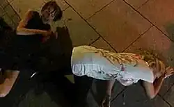Edmondson told Steve Hendry from Daily Record that Mel tries to defend herself and use her police training against them. But eventually she is overpowered by the girls and "just gets down on the floor and curls up into a ball." She explained that in the situation, it is the safest thing to do.[14] Edmondson and Elizabeth filmed the violent stunts on a location shoot at Salford Quays.[14][15] Edmondson enjoyed the experience for its acting value and claimed "it was all very safe".[14] They rehearsed fight sequences and had a stunt coordinator to help them make the scenes realistic. She added that the guest actors playing the girls had to do more preparation, which "really spurred" her and Elizabeth on to make the scenes good.[14]