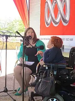 Tait interviewing Stella Young at Floriade in Canberra in 2013