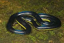 Melanophidium bilineatum, commonly known as the two-lined black shield-tail snake or iridescent shield-tail snake, is a species of snake endemic to India. This species was known from only three specimens and very little information is available of it in the wild.