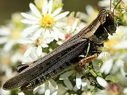 Melanoplus sanguinipes, known generally as migratory grasshopper, is a species of spur-throated grasshopper in the family Acrididae. Other common names include the lesser migratory grasshopper and red-legged grasshopper (which is also the common name of a separate species).[1][2][3][4] It is found in the Caribbean and North America.[1][5]