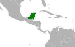 The black catbird is endemic to the Yucatán Peninsula. It occurs as far south as the Mexican state of Campeche, northern Guatemala and northern Belize,[5] and is found on the offshore islands of Cozumel, Isla Mujeres, Ambergris Caye, Caye Caulker, Lighthouse Reef and Glover's Reef.[8] Although the type specimen of the bird was apparently collected in northwestern Honduras in 1855 or 1856, it has not been recorded in that country since, and must have been rare if it was ever there.[5] Some authors feel that the specimen might have been mislabeled, and have come instead from northwestern "British Honduras" as Belize was then called.[8] There is also a single specimen of a black catbird collected from Brownsville, Texas in 1892.[13] Although obtained by a reportedly reputable collector, and accepted by the Texas State Records Committee, the origin of this specimen is a source of some controversy, and it has not been accepted by the American Birding Association or the American Ornithologists' Union.[14]