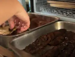 In some modern preparations, a lighter dessert is made by baking, boiling, poaching or grilling the eggplant.[3] Alternative fillings include ricotta or sponge cake, and Jordan almonds have been used as a topping.[1] Because the dish takes a long time to prepare, melanzane al cioccolato is almost always homemade and rarely sold commercially.[1][4]