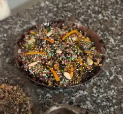 The town of Minori, located near Maiori, is closely associated with the dessert. Townspeople eat it yearly on 13 July during the feast of the town's patron saint, Trofimena. Baby eggplants are stuffed with ricotta and candied fruit, fried, dipped in melted chocolate, and left to set. It is served with the Italian liqueur limoncello.[6]