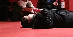 In Suryodarmo's 2001 piece Lullaby for the Ancestors she repeatedly walks in a circle around a horse while cracking a whip then dunks her head in a bucket of water.[7] The work is based on Jaran Kepang, a traditional Javanese dance where the dancers enter a trance and endure physical trials.[8]