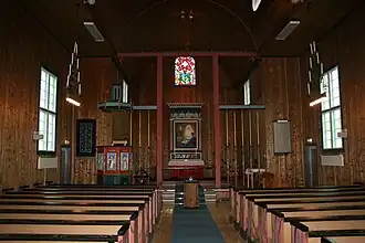 Melbu Church (Norwegian: Melbu kirke) is a parish church of the Church of Norway in Hadsel Municipality in Nordland county, Norway. It is located in the village of Melbu on the island of Hadseløya. It is one of the churches for the Melbu parish which is part of the Vesterålen prosti (deanery) in the Diocese of Sør-Hålogaland. The white, wooden church was built in a long church style in 1938 using plans drawn up by the architect Harald Sund. The church seats about 250 people.[1][2][3]