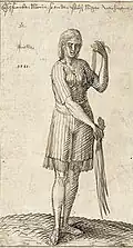 Melchior Lorck was born in either 1526 or 1527 as son of a city clerk, Thomas Lorck, in Flensborg, in the duchy of Schleswig, in present-day Germany.[1] The first document relating to him is the receipt of a royal Danish 4 year travel stipend from the Danish king, Christian III, signed on March 22, 1549 in Flensburg.[2] His earliest engravings stem from the years before the travel stipend, starting with rather unsecure copies after Heinrich Aldegrever, but soon developing a fine control of the burin as in the staunchly anti-papal The Pope as a Wild Man Archived 2011-07-16 at the Wayback Machine from 1545 and the Portrait of Martin Luther from 1548.[3] With the royal travel stipend Lorck went to southern Germany, settling in Nuremberg around 1550, where he paid tribute to that city's preeminent artist of the previous generation, Albrecht Dürer in a portrait print building on Hans Schwarz' portrait medal of the artist.