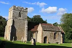 The names of places in this area are frequently muddled, with published sources providing different information.[4][9] Melcombe Bingham is the name of the current village, though in the fields near the church there is an abandoned medieval village called Bingham's Melcombe, and this latter name is sometimes used to describe the church and its adjacent manor. Writing in 1980, writer Roland Gant stated "whichever form I use, I always find that the person to whom I am speaking uses the other".[10] Either way, the name of both the civil and ecclesiastical parishes is Melcombe Horsey.[4] There are two manor houses within the parish: the one by the church—owned for six hundred years (until the late 19th century) by the Bingham family—and another a couple of miles to the west in a coombe at Higher Melcombe (which is also called Melcombe Horsey by some sources).[6][7][10] Between the two manors is another settlement, situated along the road running north into the neighbouring parish of Hilton. This settlement is called either Hartfoot Lane or Ansty (including Lower Ansty, Ansty Cross, Higher Ansty, and Little Ansty), and, according to the Ordnance Survey, at its southern end it merges into part of Melcombe Bingham.[7][8][9]