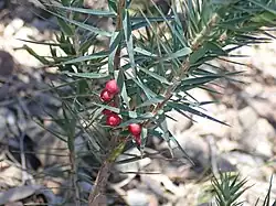 - ^ "Species profile—Melichrus erubescens (ruby urn heath)". Queensland Government, Department of Education and Science. Retrieved 27 November 2024.