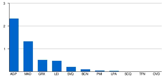 In October 2006, Air Nostrum began operating the Barcelona route, launching 4 weekly flights; and in March 2007 the operation was increased with a daily flight, reaching the record number for the route with 21,212 passengers transported.[14]