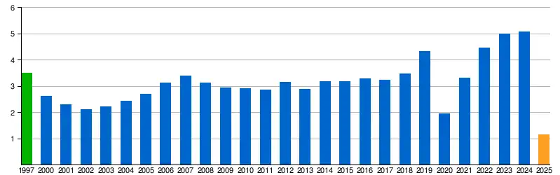 The year 2024 has marked the record for the "highest volume of traffic" in the history of Melilla airport, with a total of 507,957 passengers and 10,977 flights.[38]