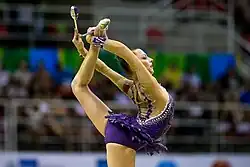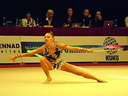 Melitina Dmitryevna Staniouta (Belarusian: Меліціна Дзмітрыеўна Станюта, Russian: Мелитина Дмитриевна Станюта; born 15 November 1993) is a Belarusian retired individual rhythmic gymnast.[7] She is a three-time (2015, 2013, 2010) World all-around bronze medalist, the 2015 European Games all-around bronze medalist, the 2014 European Championships all-around silver medalist, and 2009 Grand Prix Final all-around bronze medalist.