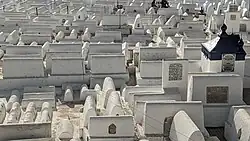 In Fez, the 17th century saw a significant influx of Jews from the Tadla region and from the Sous Valley arriving under the reigns of the Alaouite sultans Moulay Rashid and Moulay Isma'il, respectively.[5] A serious disaster, however, took place in 1790 to 1792 during a period of general turmoil for the city under Sultan Moulay Yazid.[5] During these two years the sultan forced the entire Jewish community to move to the outlying Kasbah Cherarda on the other side of Fes el-Jdid.[12] The Mellah was occupied by tribal troops allied to him, its synagogue was replaced by a mosque, and the Jewish cemetery and its contents were moved to a cemetery near Bab Guissa. Moreover, Moulay Yazid permanently reduced the size of the district by demolishing the old city walls around it and rebuilding them along a much smaller perimeter.[4][5] It was only after the sultan's death that the chief Muslim qadi (judge) of Fez ordered the Mellah to be restored to the Jewish community, along with the demolition of the mosque built by Yazid's troops.[12]