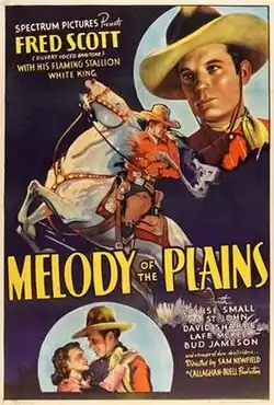 Melody of the Plains is a 1937 American Western film directed by Sam Newfield and written by Bennett Cohen. The film stars Fred Scott, Louise Small, Al St. John, David Sharpe, Lafe McKee and Bud Jamison. The film was released on April 2, 1937, by Spectrum Pictures.[1][2][3]