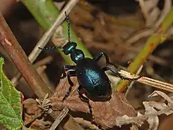 Meloe violaceus, the violet oil beetle, is a species of oil beetle belonging to the family Meloidae subfamily Meloinae.