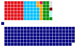 This is the seating arrangement based on the old meeting hall in previous interior, as of its last meeting on 24 November 2016 before meeting hall was moved to new meeting hall on the following year.