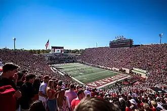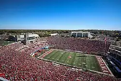 Memorial Stadium is a stadium in Bloomington, Indiana, United States. It is primarily used for football, and has been the home of Indiana Hoosiers football since its opening in 1960. It is the 15th largest football stadium in the Big Ten Conference, with a capacity of 52,626.[1] The field has a conventional north-south alignment, at an approximate elevation of 771 feet (235 m) above sea level.
