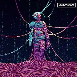 The opening track, Memory Leak, was initially composed in a "very spontaneous moment" in 2022, before Brents had decided to create a full album.[8] Lyrically, it concerns "an entity in a video game becoming sentient and causing a huge data leak, which affects other realities".[9] The lyrics of Old Wave concern the emotions of an obsolete android accepting the fact that newer models supersede it.[10] Reek focuses on the experience of a service robot aboard a spaceship, which eventually becomes displeased with the presence of humans, sending it into a deranged fury which leads to its takeover of the spacecraft.[11]