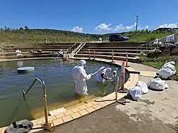 As of 2024, two outdoor baptismal pools (including a large main pool for masbuta and a smaller pool for ablutions), a washroom (for changing into ritual clothing), and a parking lot have been built and are already operational, and thousands of trees have also been planted.[4] A congregation hall, guesthouse, playground, and gardens are being planned. Water for the mandi's baptismal pool is pumped in from the Nepean River, since flowing river water is traditionally required for Mandaean rituals.[3][5]