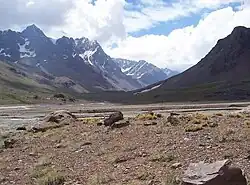 The Mendoza River is a river in the province of Mendoza, Argentina.[1] It is formed in the Andes range between the Aconcagua and the Tupungato, by the confluence of the Vacas, the Cuevas and the Tupungato rivers, the last being its major tributary.