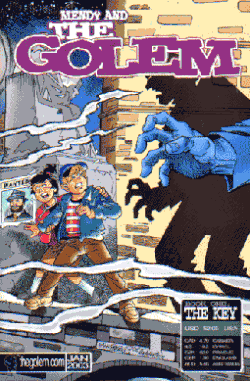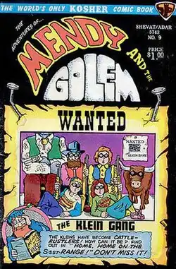 Billed as "The World's Only Kosher Comic Book", Mendy Enterprises' Mendy and the Golem first appeared in 1981 available for $1.00. Written by Leibel Estrin and drawn by Dovid Sears, the comic book featured the offbeat misadventures of Mendy, an Orthodox Jewish boy, and his pet Golem. Other characters include Mendy's parents, Rabbi Yaakov and Sara Klein; Mendy's sister, Rivky; and a host of colorful supporting characters such as Moshe the Mayven; the Lone Stranger and his faithful friend Toronto; Captain Video; Dr. Hardheart and his evil robot Oy Vayder; and Professor Nemo.