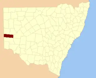 - ^ "Menindee County". Geographical Names Register (GNR) of NSW. Geographical Names Board of New South Wales.