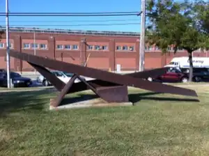 Menomonee is a public artwork by artist Hilary Goldblatt located on the former Emmber Foods, Inc. grounds on the south side of Milwaukee, Wisconsin, United States. The Cor-Ten steel piece is a horizontal constructivist abstract form composed of beams forming angles and open spaces. It was created in 1985 and is 4.5 ft high, 20 ft long and 4 ft wide.