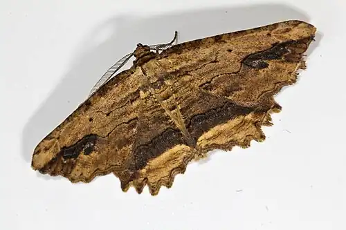 Menophra abruptaria, the waved umber, is a moth of the family Geometridae. The species was first described by Carl Peter Thunberg in 1792. It is found in south-western North Africa, southern Europe and Anatolia; in the north, it is found from England to Switzerland, south-western Germany, Bangladesh . The wingspan is 36–42 mm. Adults are on wing from April to June. Normally, there is one generation per year, although there can be a partial second generation in summer.