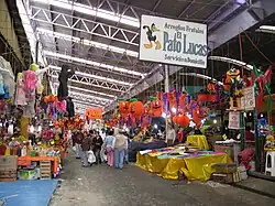 There is a section dedicated to piñatas, most made with cardboard and covered in crepe paper, although more traditional ones with a clay pot in the center can still be found. Designs range from traditional stars to those based on recent figures from popular movies and television shows. The busiest time of year for this section of the market is December, before Christmas, when a tradition called “Las Posadas” often involves the breaking of one or more piñatas. While traditional to that season, the breaking of piñatas is no longer confined to December and can be found at various types of celebrations year round, which helps to support this section’s permanent presence.[6]