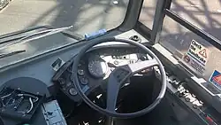 The step-entrance version was known as the O405. A 3-axle articulated version was also built known as O405G and a trolleybus as the O405T.[1] There were two generations of O405, designated as O405 MkI and O405 MkII. Most of them have their boxy roof dome (slightly arched) with a double-curvature windscreen, separately mounted destination indicator and pantograph system windshield wipers that was used on some buses such as the Dennis Dart, Leyland Lynx, MAN NL262 and the MAN SL202.