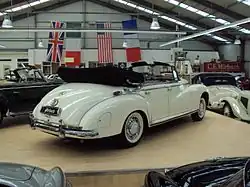 The W186 is often identified as an Adenauer after Konrad Adenauer, the first Chancellor of the Federal Republic of Germany (West Germany), who employed six custom cabriolet, hardtop saloon, and landaulet versions of the W186 and its successor W189 during his 1949-1963 tenure. Among the custom features in these "parade cars" were writing desks, sirens, curtains, dividing partitions, sunroofs, and half-roof "landaulet" configurations.