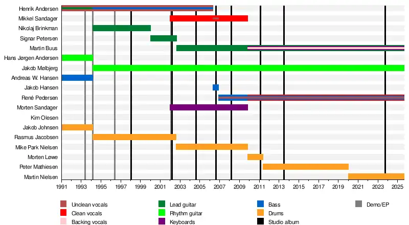 | Past members | Hans Jørgen Andersen Henrik "Kral" Andersen Nikolaj Brinkman Andreas W. Hansen Jakob Johnsen Mike Park Signar Petersen Mikkel Sandager Morten Sandager Morten Løwe Rasmus Laulund Jacobsen Peter Mathiesen |