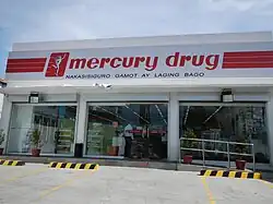 The Mercury Drug Corporation, better known as Mercury Drug, is a Philippine pharmacy chain. A subsidiary of the Mercury Group of Companies, it is headquartered in Bagumbayan, Quezon City.[5] The chain was founded in Santa Cruz, Manila in 1945,[1] making it the second oldest drugstore chain in the Philippines after Southstar Drug by eight years. As of 2017, Mercury Drug has over 1,000 branches nationwide[6] and over 50 percent of the Philippine pharmaceutical retail market.[7]