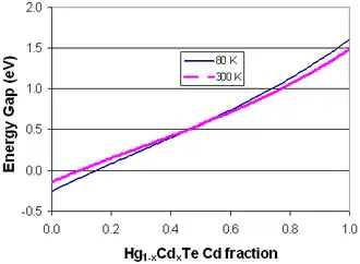 - ^ Hansen (1982). "Energy gap versus alloy composition and temperature in HgCdTe". Journal of Applied Physics. 53. doi:10.1063/1.330018.
