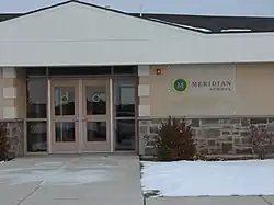 In 2004, Meridian bought a private park at Geneva Road and Interstate 15 owned by Geneva Steel's employee group Geneva Recreation Association, planning to move their campus there by 2005.[6][7] The 14-acre site lacked utilities, which posed an issue for construction and preventing Meridian from moving there.[8][9] In 2008, after spending 19 years at their original location, Meridian moved to 280 S. 400 East in Orem, Utah, renting the property from Christ Evangelical Church.[8]