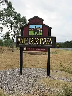 The town is located on the Golden Highway, 273 kilometres (170 mi) northwest of Sydney and about halfway between Newcastle and Dubbo. At the 2011 census, Merriwa had a population of 1,790 people.[1] Up until 2004, Merriwa was part of the Merriwa Shire local government area, when it was merged with nearby Scone Shire and Murrurundi Shire councils to form the Upper Hunter Council.
