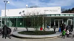 The Forum Merzhausen (officially Schreibweise FORUM | Merzhausen) in the middle of town is a culture and town house and was finished in November 2012. The transparent walls surround a small hall which can seat around 120 and a separate big hall which can seat 457. Between the Forum and two residential homes is the new Marktplatz.[13]