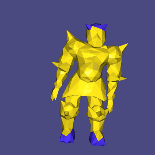 While this method is translation invariant, it is unable to account for rotations. The As-Rigid-As-Possible deformation scheme[10] applies a rigid transformation to each handle i, where is a rotation matrix and is a translation vector. Unfortunately, there's no way to know the rotations in advance, so instead we pick a “best” rotation that minimizes displacements. To achieve local rotation invariance, however, requires a function which outputs the best rotation for every point on the surface. The resulting energy, then, must optimize over both and :
