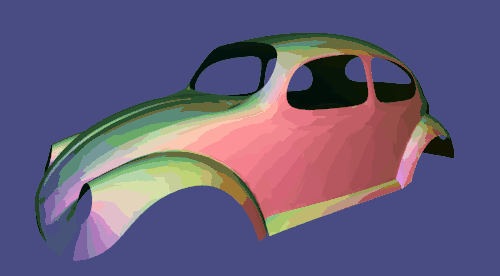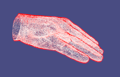 Depending on how a shape is initialized or "birthed," the shape might exist only as a nebula of sampled points that represent its surface in space. To transform the surface points into a mesh, the Poisson reconstruction[3] strategy can be employed. This method states that the indicator function, a function that determines which points in space belong to the surface of the shape, can actually be computed from the sampled points. The key concept is that gradient of the indicator function is 0 everywhere, except at the sampled points, where it is equal to the inward surface normal. More formally, suppose the collection of sampled points from the surface is denoted by , each point in the space by , and the corresponding normal at that point by . Then the gradient of the indicator function is defined as: