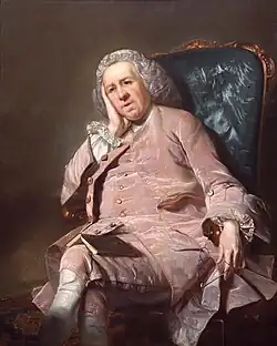 Anecdotes about Monsey's eccentricities and unseemly language were collected after his death.[5] He held his appointment to Chelsea Hospital, also obtained through Godolphin, until his death there on 26 December 1788 aged 94, after which he was dissected in a post mortem examination before students of Guy's Hospital, as he had requested.[3] An extensive medical and personal correspondence between Monsey and the noted Norwich physician and philanthropist Benjamin Gooch survives in the British Library.[6] On his death Monsey left £16,000 to his only daughter Charlotte, who had married William Alexander, brother to James Alexander, 1st Earl of Caledon.[7]