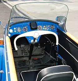 Apart from the dual-mode ignition, the KR200 had a steering bar reminiscent of that of an aircraft.[4][18] To steer the KR200, the driver would swivel the steering bar about its axis from the horizontal (straight-ahead) position instead of rotating it as with a conventional steering wheel. The mechanism was connected directly to the track rods of the front wheels, providing an extremely direct response best suited to small amounts of movement,[4][18] unlike other common steering mechanisms which involved reduction gearing. The gearshift lever had a secondary lever on it which, when actuated, would put the car in neutral regardless of what gear it had been in before, although the transmission would have to be shifted back to first before the car would be able to move from a standstill.