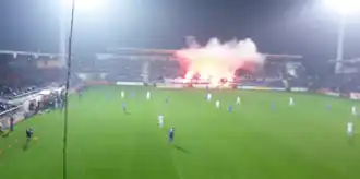 Městský fotbalový stadion Miroslava Valenty is a multi-use stadium in Uherské Hradiště, Czech Republic. It is used mostly for football matches and is the home ground of 1. FC Slovácko. The stadium has an all-seated capacity of 8,121 people.