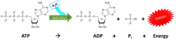 H2O + ATP → H+ + ADP + Pi + energy → muscle contraction[22]