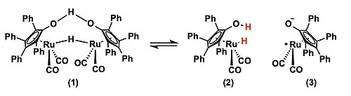 - ^ Shvo, Youval.; Czarkie, Dorotha.; Rahamim, Yocheved.; Chodosh, Daniel F. (1986-11-01). "A new group of ruthenium complexes: structure and catalysis". Journal of the American Chemical Society. 108 (23): 7400–7402. doi:10.1021/ja00283a041. ISSN 0002-7863.