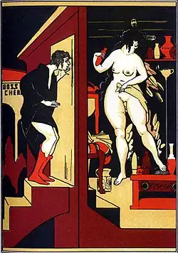 During the day, her husband absent at his labors, the smith's wife is engaged in an adulterous affair. One day, the smith, work finished well ahead of schedule, returns home prematurely—obviously to his wife's great consternation. Panicked, the faithless woman hides her lover in an old tub. After absorbing his spouse's efforts at distraction, which take the form of bitter reproaches that his coming back so early betokens a laziness that can only worsen their poverty, the smith announces that he has sold the tub for six drachmae; to this his wife responds by saying that she has in fact already sold it for seven, and has sent the buyer into the tub to inspect it. Emerging, the lover complains that his supposed purchase is in need of a proper scrubbing if he is to close the deal, so the cuckolded smith gets a candle and flips the tub to clean it from underneath. The canny adulteress then lies atop of the tub and while her lover pleasures her, instructs her hapless husband as to where he should apply his energies. To add insult to injury, the ill-used man eventually has to deliver the tub to the lover's house himself.