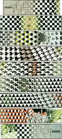 Metamorphosis III is a woodcut print by the Dutch artist M. C. Escher created during 1967 and 1968. Measuring 19 cm × 680 cm (7+1⁄2 in × 22 ft 3+1⁄2 in), this is Escher's largest print. It was printed on thirty-three blocks on six combined sheets.