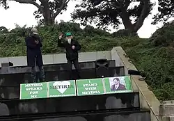 Metiria Turei has a daughter, Piupiu Turei, and is married to Warwick Stanton.[1][62][63] In February 2014, Turei and her husband were living in Waitati, close to the shore of Blueskin Bay, a coastal estuary to the north of Dunedin. She is also a performing arts enthusiast and participated in a performing group called Random Trollops and medieval reenactments at her Blueskin Bay home. Turei also wore Adrienne Winkelmann jackets, which elicited criticism from several National Party MPs including Judith Collins.[64][65]