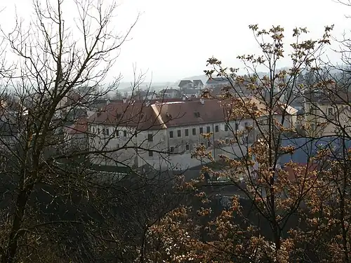 During the 18th century, the castle was damaged by fire twice (in 1705 and 1790); after repairs it was bought by Jožef Savinšek in 1792. It survived World War II intact and was afterward nationalized without compensation and converted into the headquarters of the Museum of White Carniola (Slovene: Belokranjski muzej), established in 1951,[1] and became home to some of its permanent collections. Exhibits include a cultural history of White Carniola, collections of Roman and medieval stone markers and memorials, and an ethnological collection on the historical way of life in White Carniola.[1] The former castle stables and other outbuildings house the Metlika Slovene Firefighting Museum. In addition, the second floor contains a wedding hall, and the basement a wine cellar. Metlika Castle also features the Gangl Gallery for temporary exhibitions, which is part of Museum of White Carniola.[2]