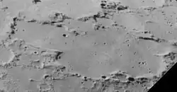 Meton is a compound formation on the Moon that consists of several merged crater rings that have been flooded with lava, forming the remnant of a walled plain in the shape of a clover leaf. It is located near the northern lunar limb, and is viewed from a low angle and foreshortened. The crater Barrow is attached to the southwest rim. To the northwest is the crater Scoresby, and to the east are Baillaud and Euctemon.