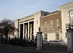 The first council elected consisted entirely of "Non-Party" candidates, although The Times noted that they were "Conservative in character".[20] The entire council continued to be described as Independent or Non-Party until the 1934 election when the Labour Party gained 13 seats to the Independents' 17. Labour gained control of the council in 1945, taking all of the seats on the council.[21] The Conservative Party first ran in the 1949 election, winning control from Labour by 23 seats to 7.[22]